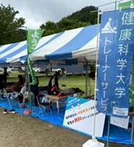 現在は、リハビリテーション学科で培った専門知識と技術を活かし、以下の活動を中心に行っています。地域のマラソン大会でのトレーナーブース出展: ランナーの方々へのコンディショニングやケアを行い、大会の安全と参加者の満足度向上に寄与しています。(富士山マラソン、富士トライアスロン、西湖ロードレース、チャレンジ富士五湖ウルトラマラソンなど)