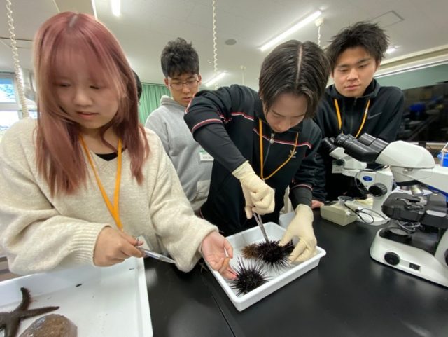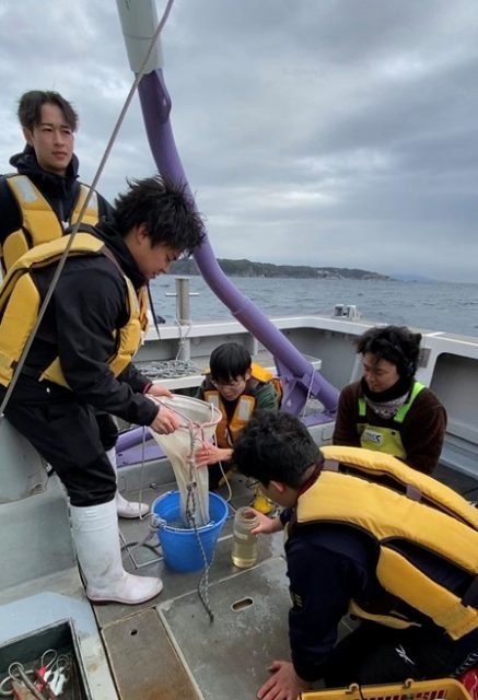1日目に鍋田湾での磯採集、2日目に船に乗船し下田沖でのプランクトン採集を実施しました。3日目には、採集した海洋生物の分類や自分で考えた実験をまとめて、研究発表会をおこないました。